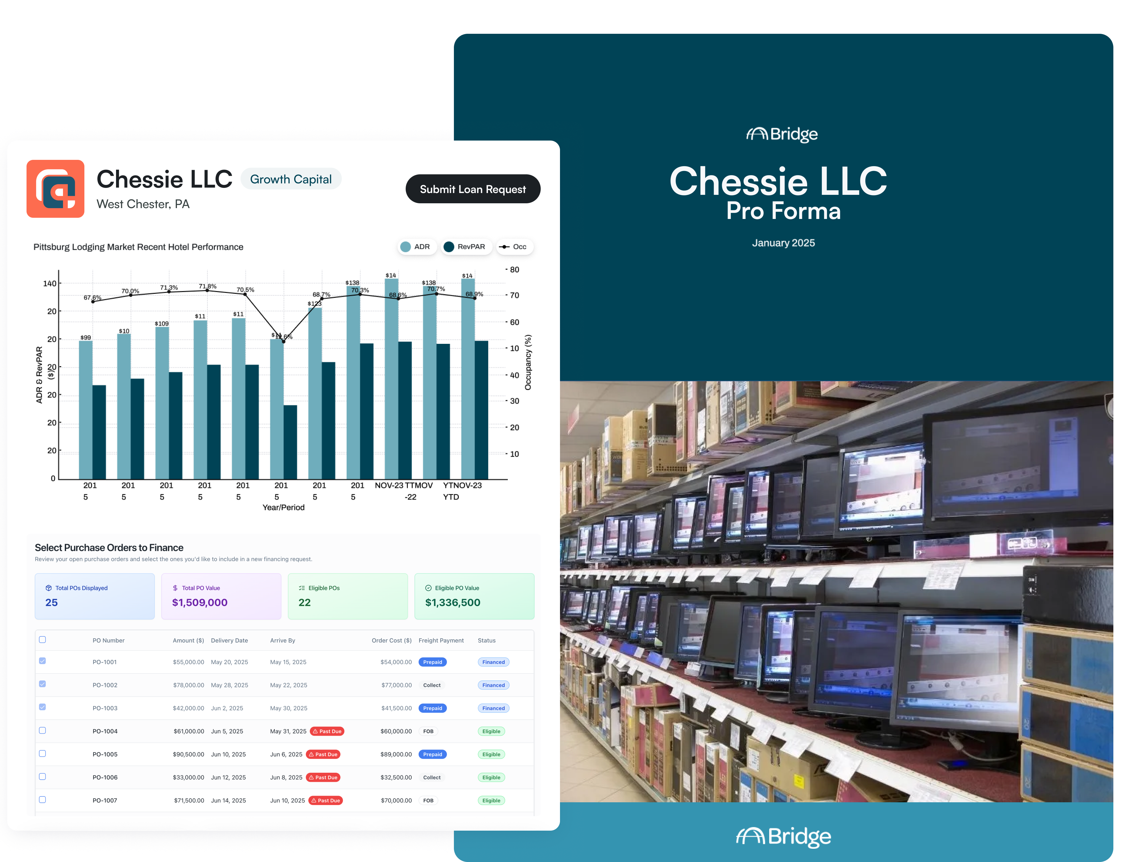 There's a reason Bridge is the financing partner to the leading hotel, CPG, and franchise brands... We make it easy for you to get the capital you need with the most competitive terms.